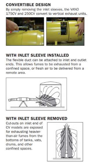 The VANO offers a fixed guide vane design that delivers high volumes of air while maintaining static pressure for exhausting fumes and delivering fresh air – making it the quintessential confined space ventilator. A rugged, durable, high-performance design makes the VANO ideal for ventilating tanks, process vessels, tank cars, manholes, and other confined spaces. Shop Now!